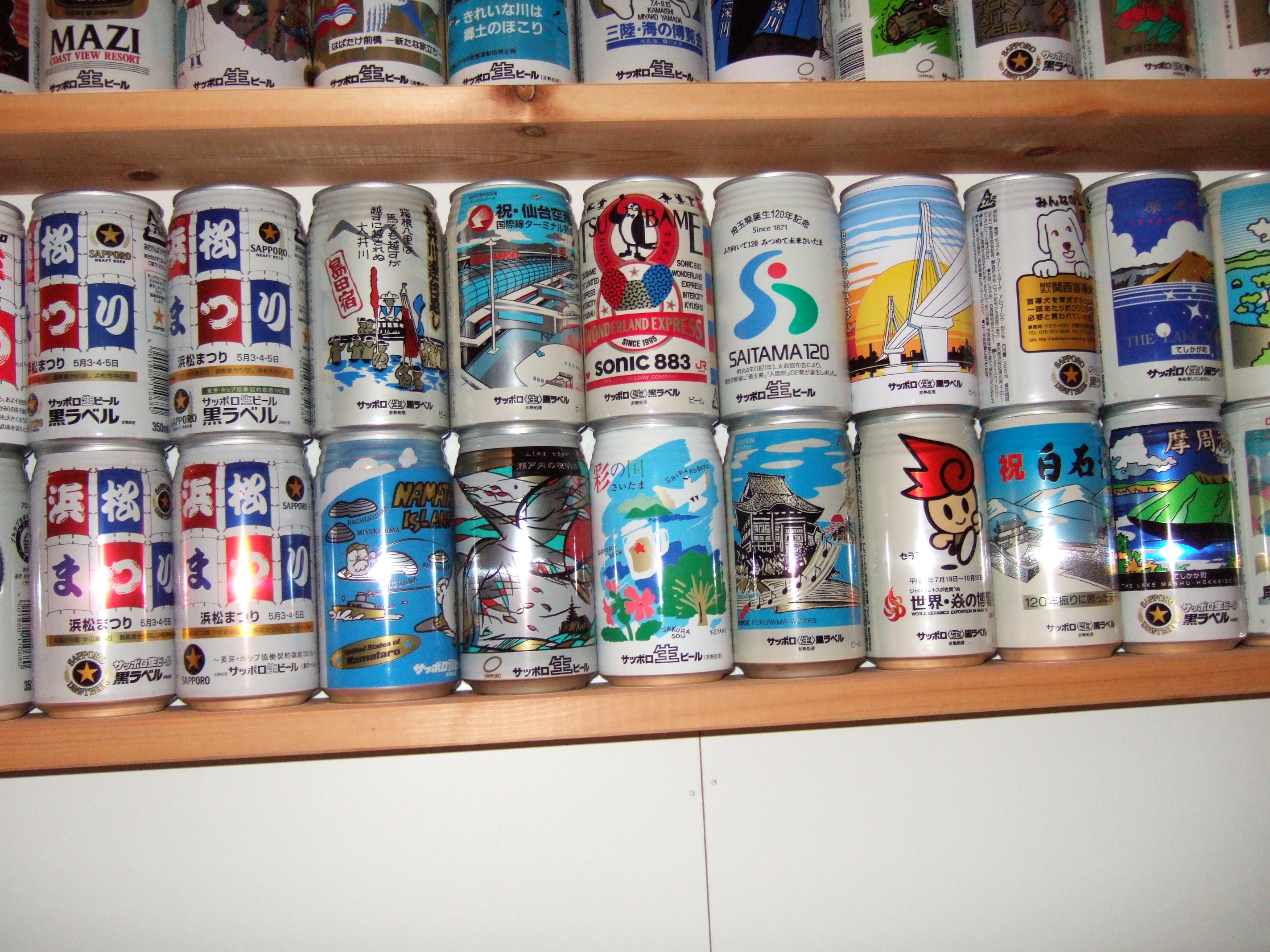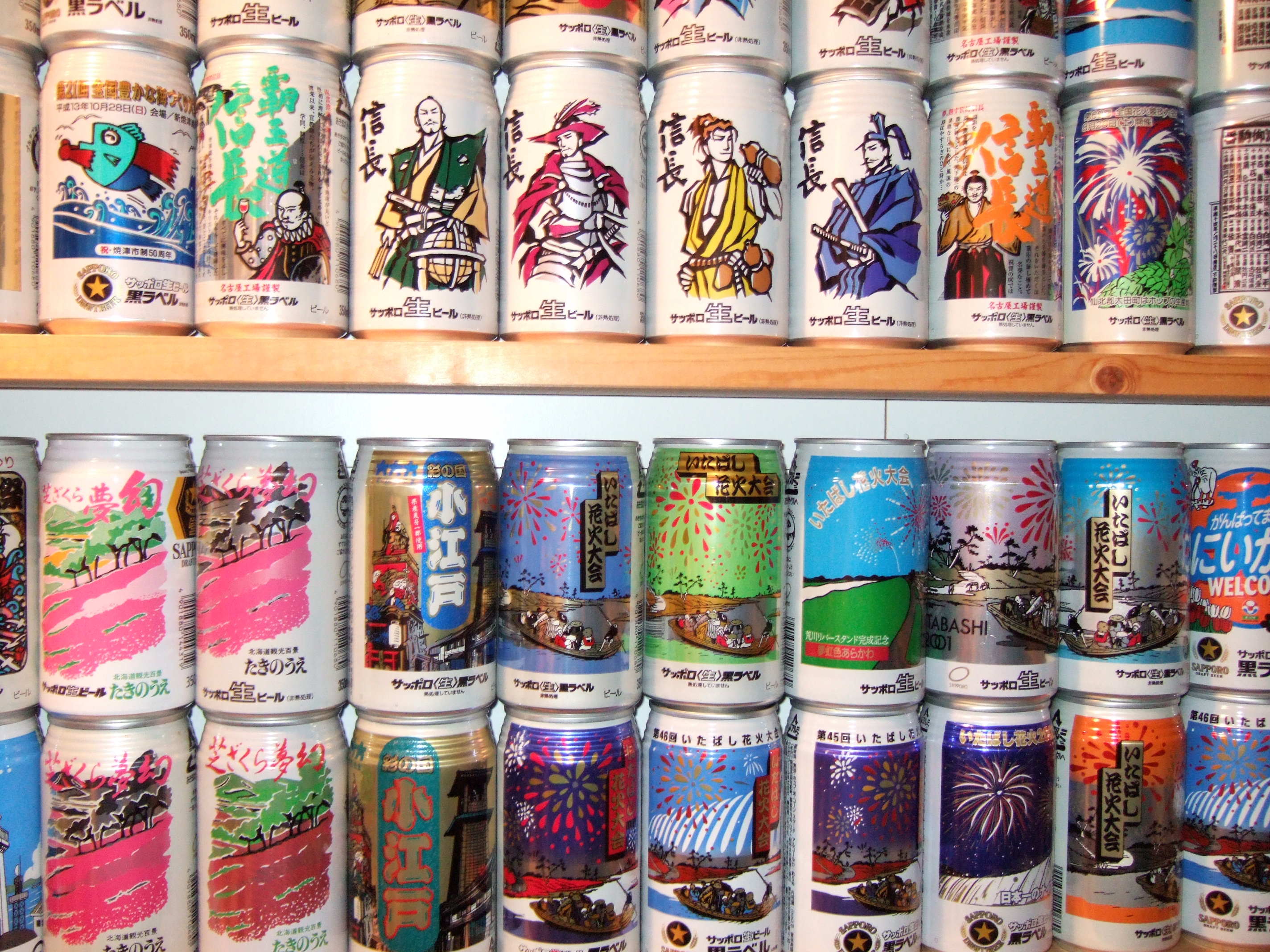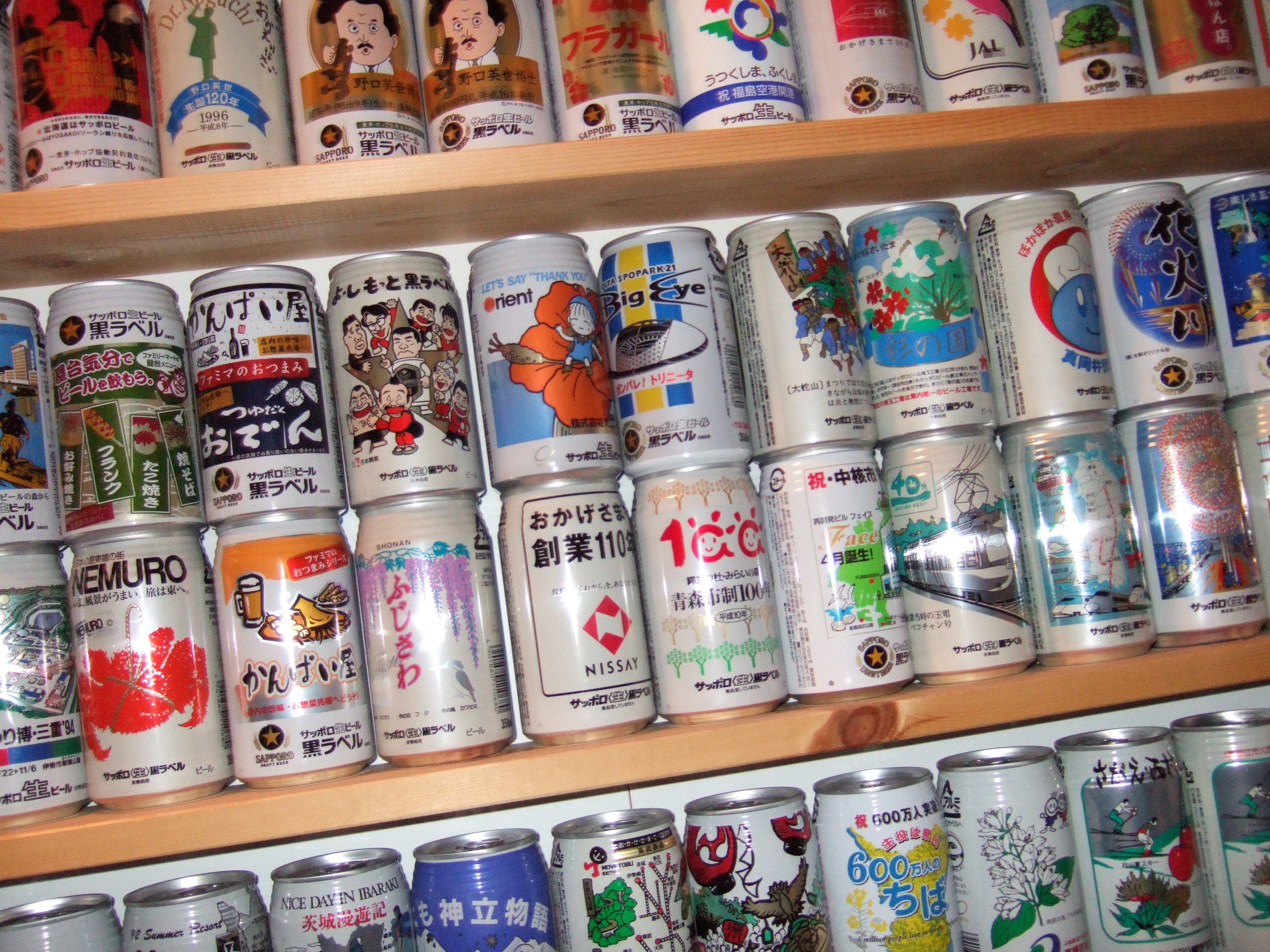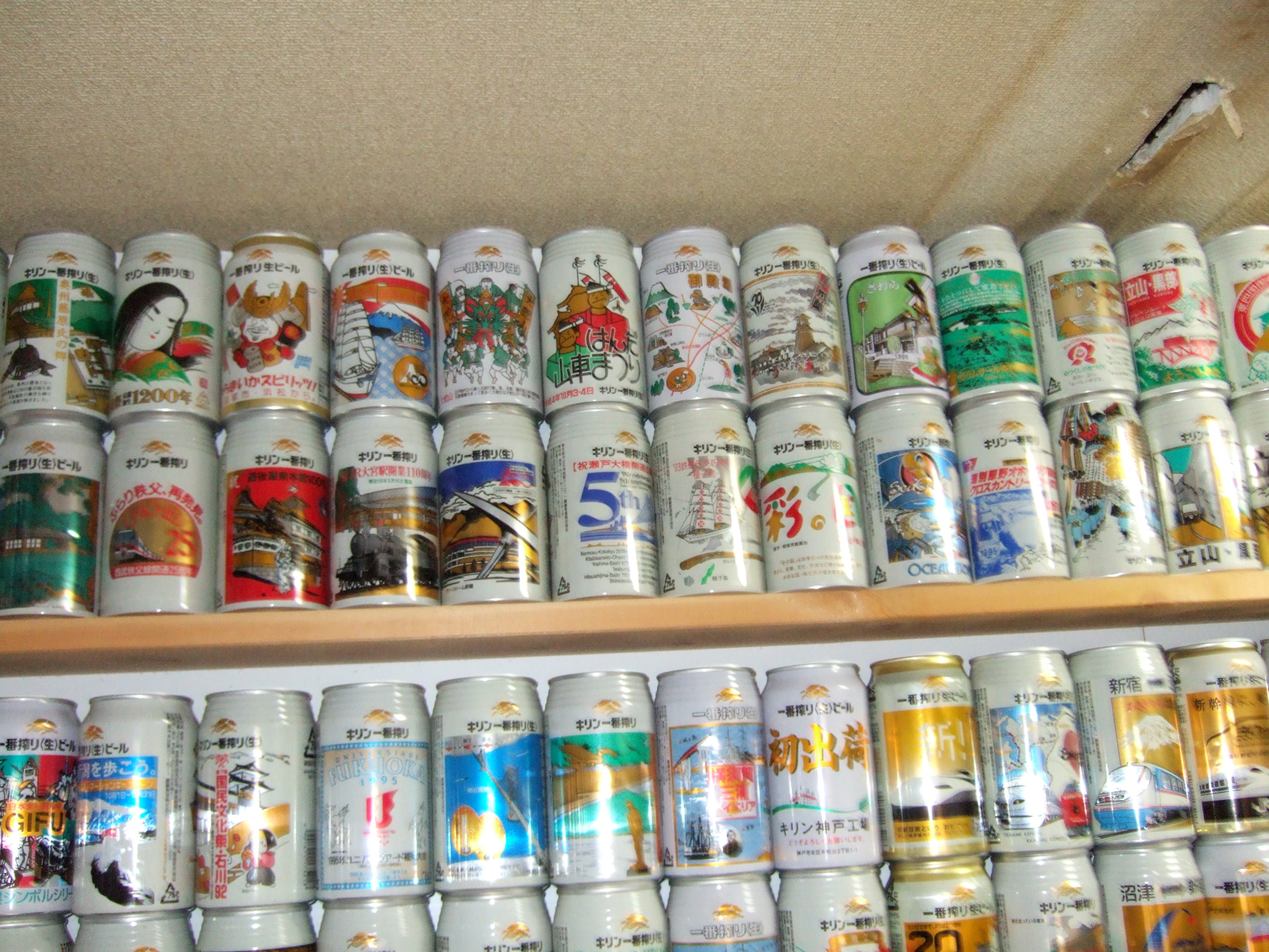 これだけの缶が天井から床までびっしり並んでいると壮観です。