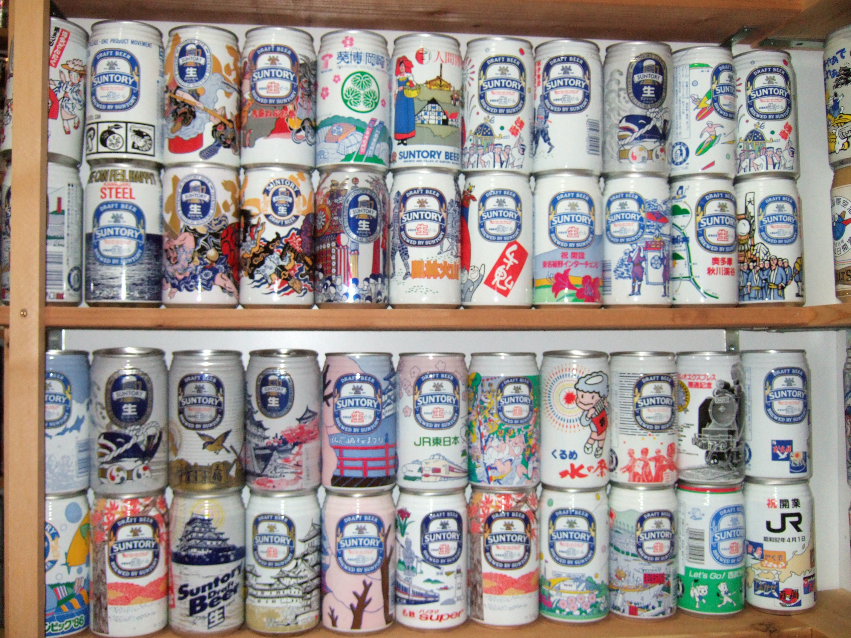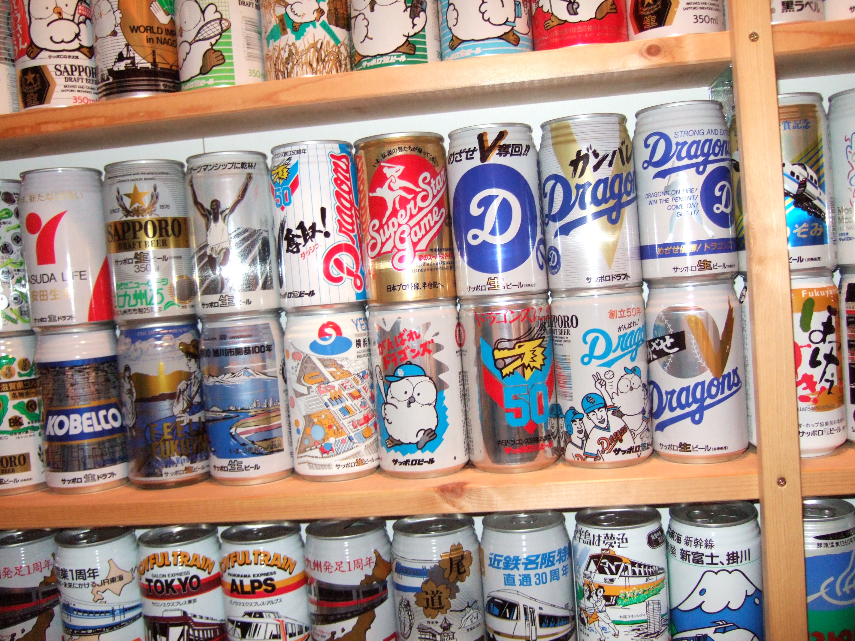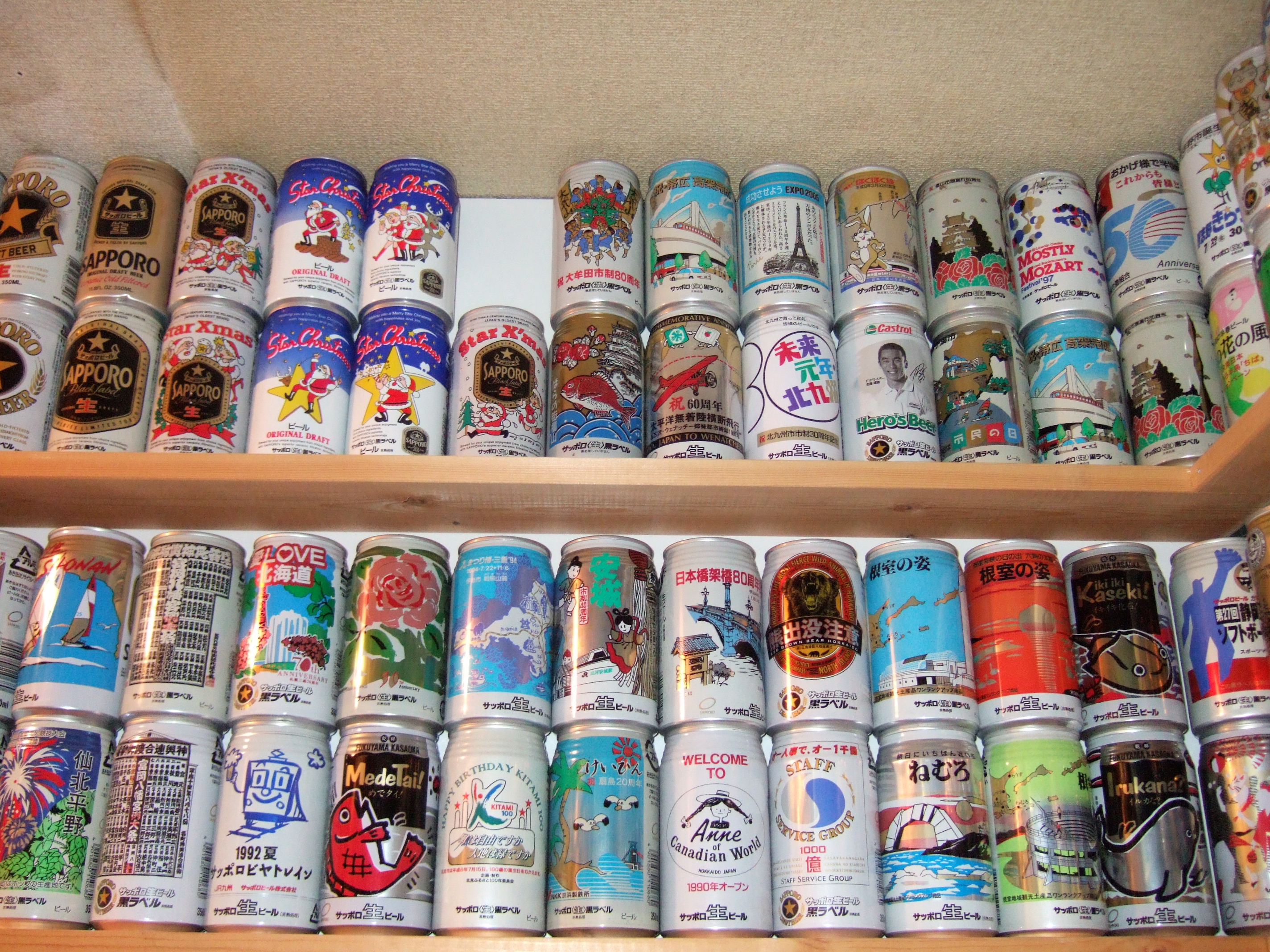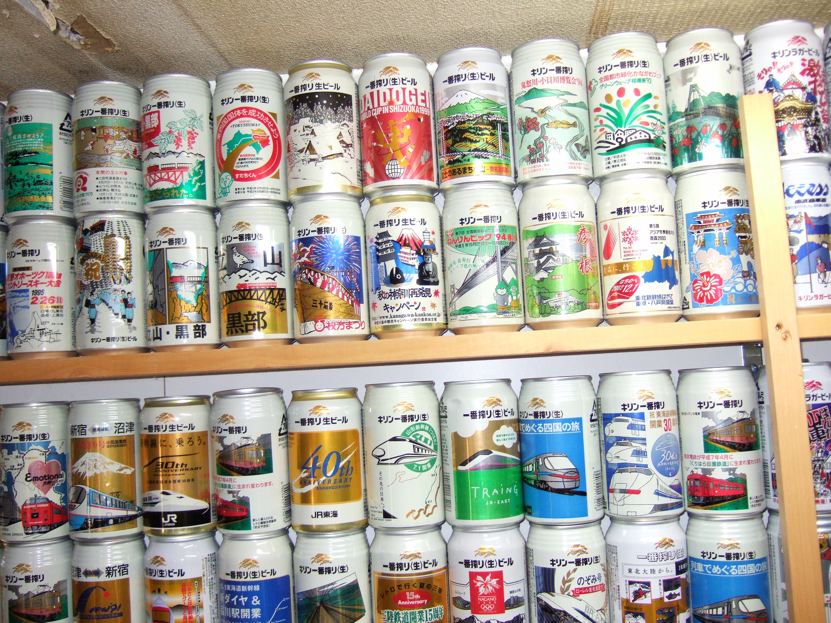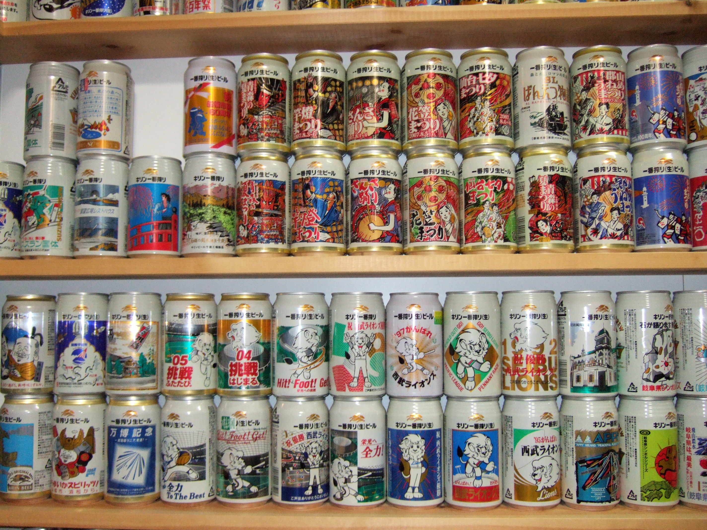 これだけの缶が天井から床までびっしり並んでいると壮観です。