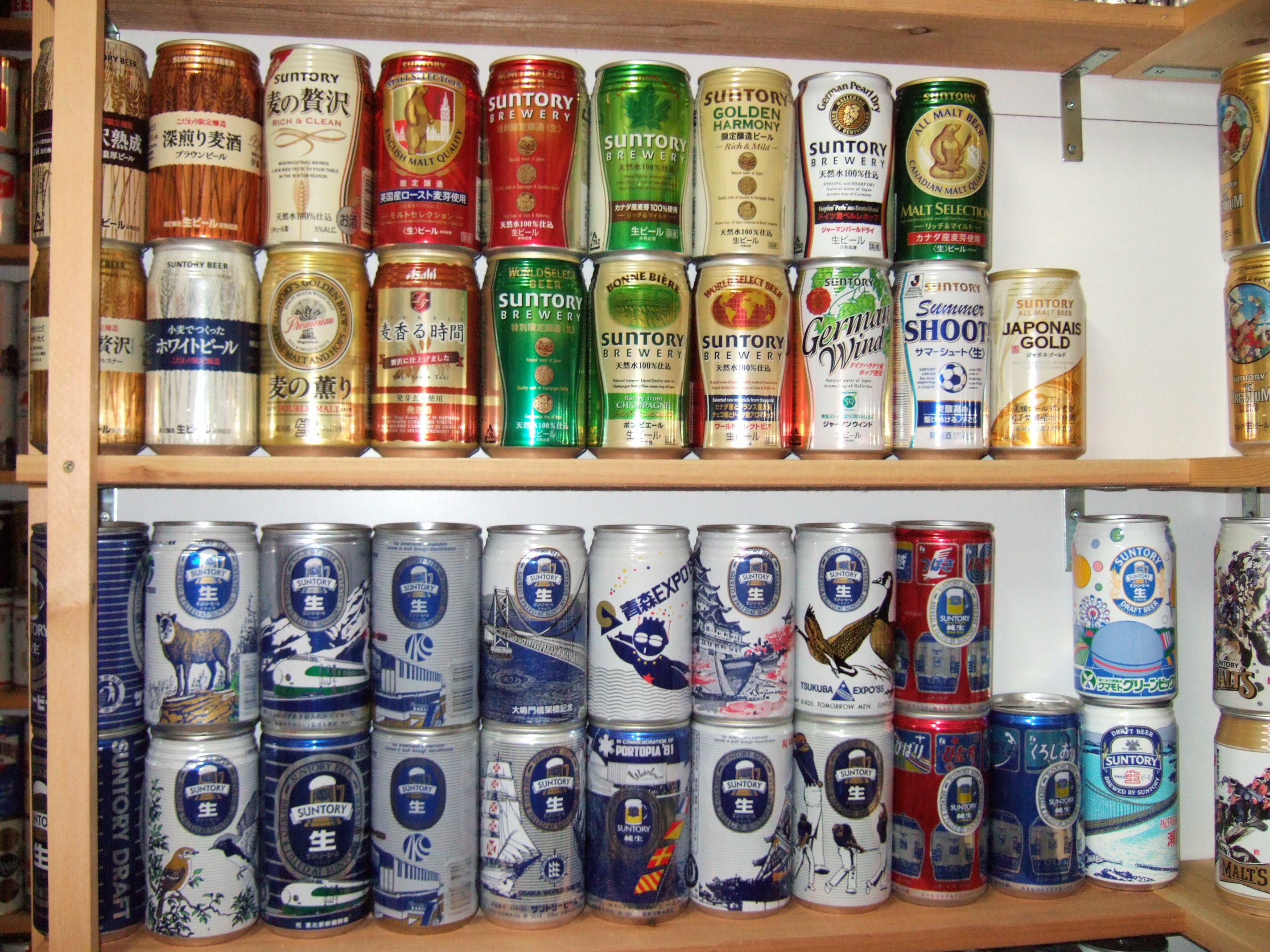 博物館入り口では、サントリーのペンギンシリーズがお出迎えです。所蔵缶は日本缶と外国缶が半々ってところでしょうか。
