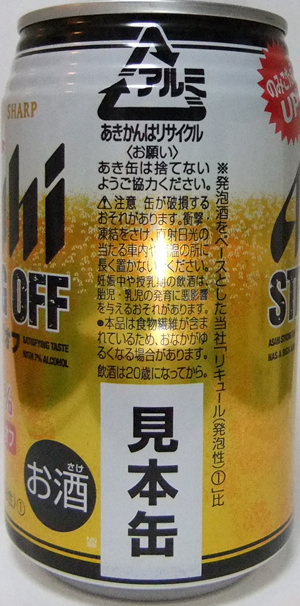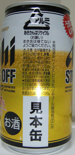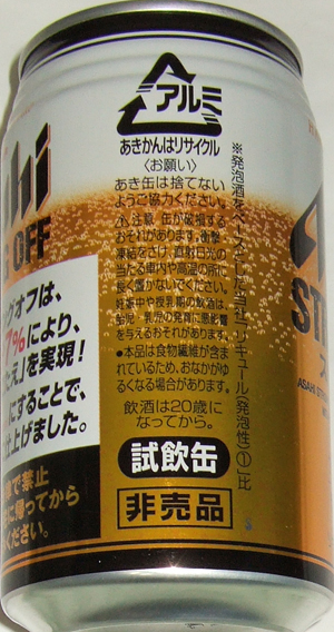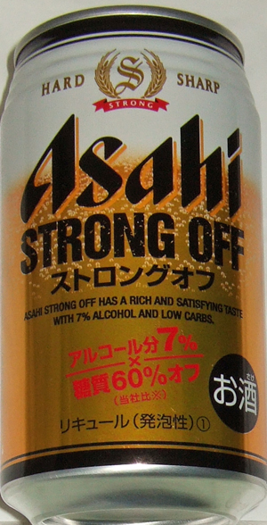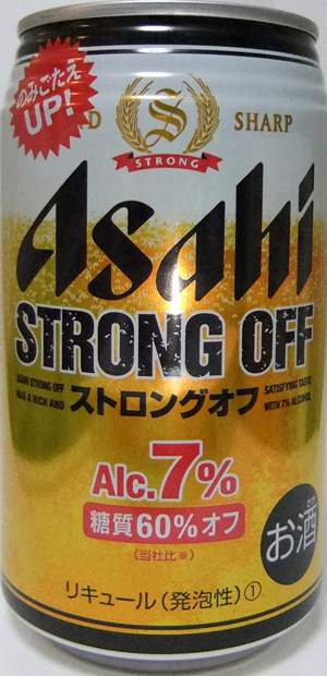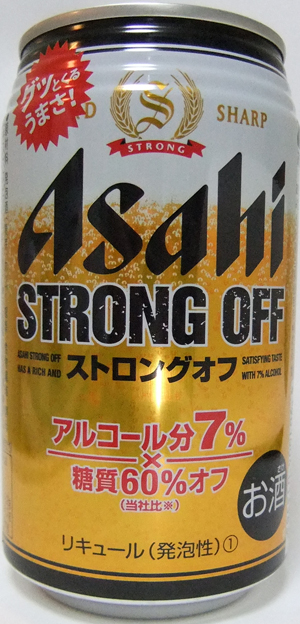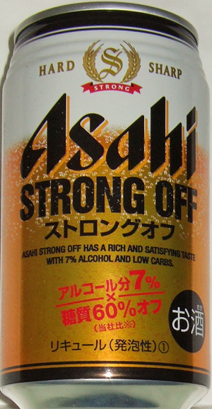 | 製造日 2010.3 | アルコール分7% 糖質60%オフ ASAHI STRONG OFF HAS A RICH AND SATISFYING TASTE WITH 7% ALCOHOL AND LOW CARBS. リキュール(発泡性)@ | |