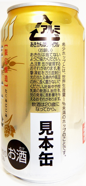 | 製造日 2018.3 | 限定醸造 たくみじこみ 上質な苦みと飲みごたえ 国産希少ホップ一部使用 | |