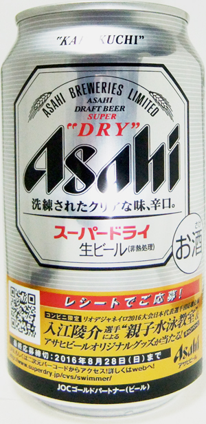 | 製造日 2016.7 | レシートでご応募! [コンビニ限定] リオデジャネイロ2016大会日本代表選手団応援企画 入江陵介選手による“親子水泳教室”&アサヒビールオリジナルグッズが当たる!キャンペーン | |