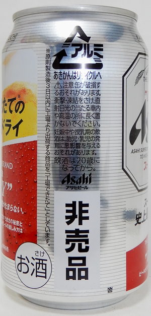 | 製造日 2020.12 | ビールがうまい。この瞬間がたまらない。 裏面 スーパードライ史上最高のうまさ。横面 非売品 アサヒスーパードライ史上最高のうまさ実感キャンペーン | |