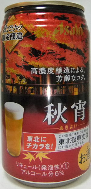 | 製造日 2014.8 | 秋限定 この秋だけの芳醇なコクと味わい 深煎り麦芽一部使用 リキュール(発泡性)@アルコール分6% お酒 | |