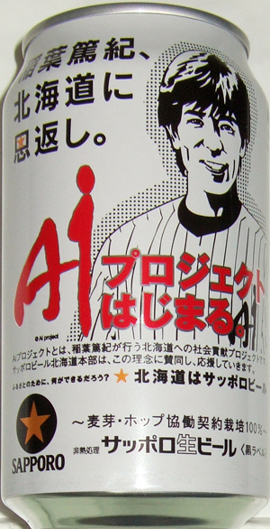 | 製造日 2005.3 | NIPPON−HAM FIGHTERS サッポロビールは北海道日本ハム ファイターズのオフィシャルスポンサーです。デザインは、CMキャラクターの小笠原道大選手です。 | |