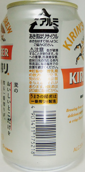| 製造日 2018.4 | 一番搾り 一番搾り麦汁だけでつくるから、一番搾り。おいしいに決まってます。 裏面 側面 | |