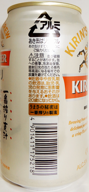 | 製造日 2017.5 | サイドに「うまさの秘密は一番搾り製法」表面 | |
