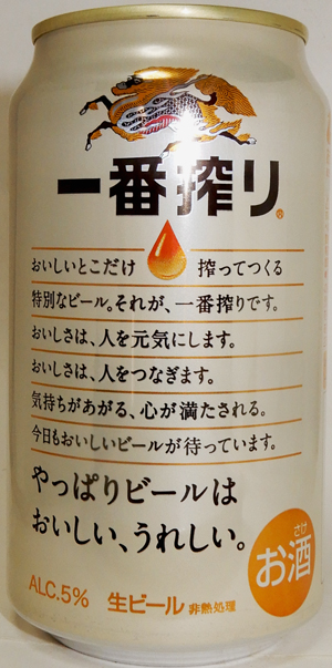 | 製造日 2022.2 | おいしいとこだけ搾ってつくる特別なビール。それが一番搾りです。おいしさは、人を元気にします。おいしさは、人をつなぎます。気持ちがあがる、心が満たされる。今日もおいしいビールが待っています。やっぱりビールはおいしい、うれしい。 表面 裏面 | |