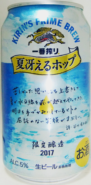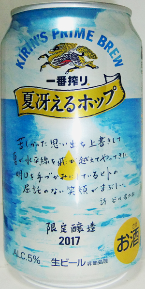 | 製造日 2017.5 | 限定醸造2017 裏面 苦しかった思い出を上書きして 夏が水平線を飛び越えてやってきた 明日を手づかみにしているヒトの屈託のない笑顔がまぶしい 詩・谷川俊太郎 | |