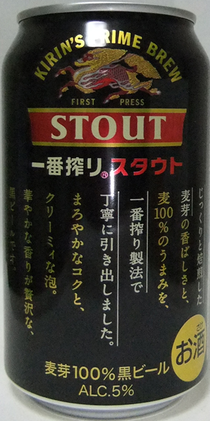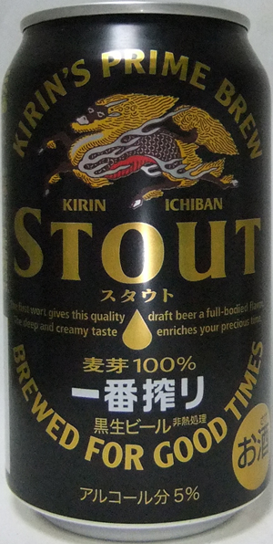 | 製造日 2007.9 | 黒生ビール Just taste "Ichibanshibori Stout." The first wort gives marvelously deep taste. The aroma of roasted malt and smooth creamy foam enrich your precious time. | |
