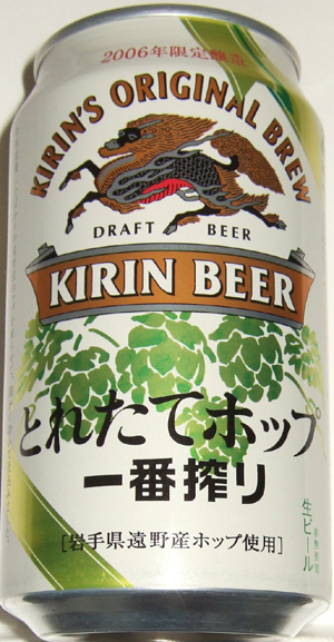 | 製造日 2006.10 | 2006年限定醸造 [岩手県遠野産ホップ使用] 今年収穫したばかりの遠野産ホップを凍らせて、 細かく砕いて仕込みました。 | |