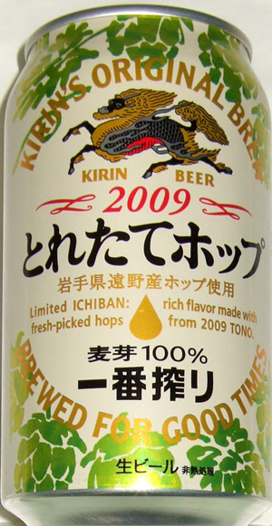 | 製造日 2009.10 | 2009 岩手県遠野産ホップ使用 Limited ICHIBAN: rich flavor made with fresh-picked hops from 2009 TONO. | |