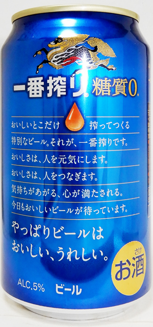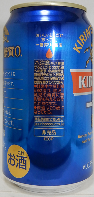 | 製造日 2020.7 | 日本初糖質ゼロビール 裏面 裏面 一番搾り麦汁だけでつくった糖質ゼロ。おいしいに決まってます。 | |