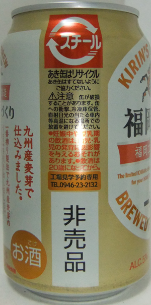 | 製造日 2015.5 | 福岡工場限定醸造 九州産麦芽で仕込みました。 福岡工場醸造長 泉賢一郎裏面 側面非売品 | |