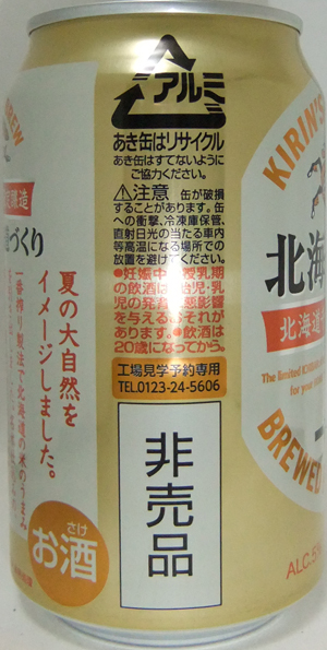 | 製造日 2015.5 | 北海道千歳工場限定醸造 夏の大自然をイメージしました。 北海道千歳工場醸造長 有賀逸人裏面 側面非売品 | |