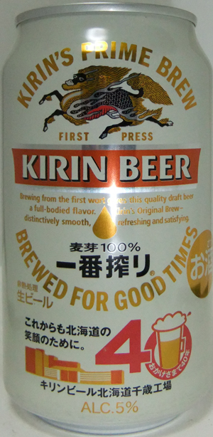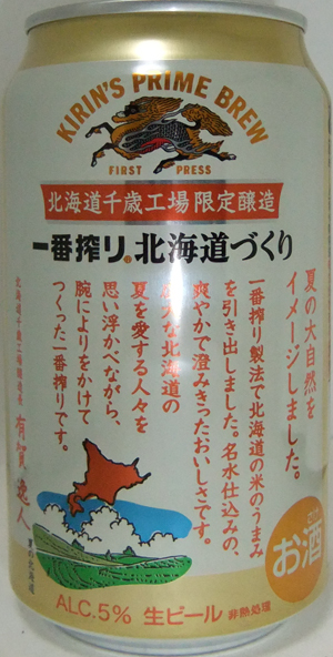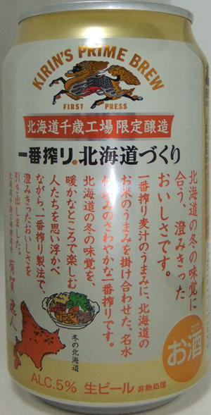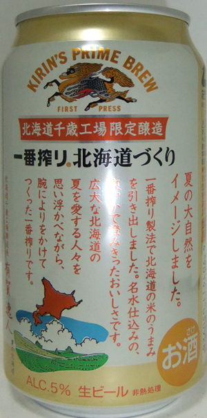 | 製造日 2015.6 | 北海道千歳工場製造の一番搾りは北海道の名水でつくっています。環境省の名水百選「ナイベツ川湧水」を源流にもつ内別川の水を自社基準で丁寧に磨いてつくっています。裏面これからも北海道の笑顔のために。キリンビール北海道千歳工場 おかげさまで40年 | |