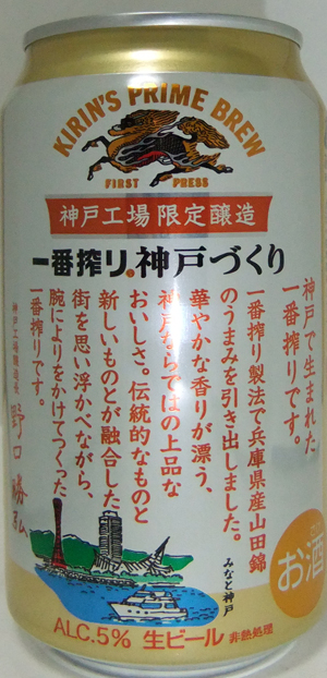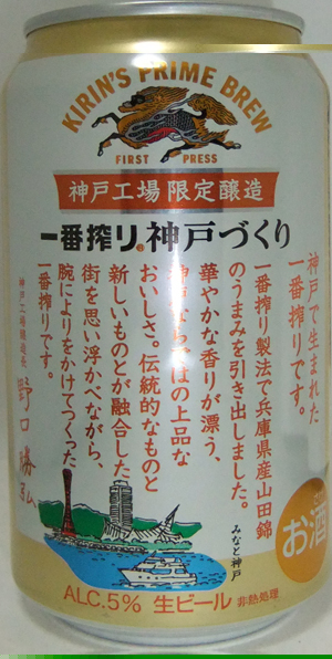 | 製造日 2015.5 | 神戸工場限定醸造 神戸で生まれた一番搾りです。 神戸工場醸造長 野口勝弘裏面 | |