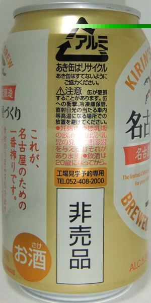 | 製造日 2015.5 | 名古屋工場限定醸造 これが名古屋のための一番搾りです。 名古屋工場醸造長 有村治彦裏面 側面非売品 | |