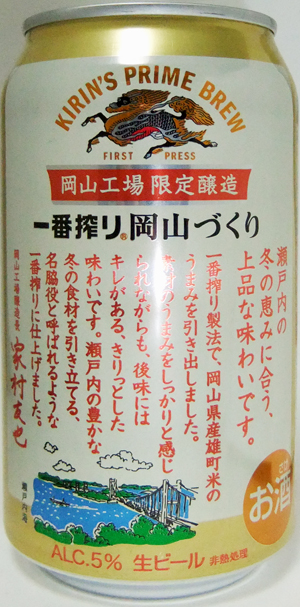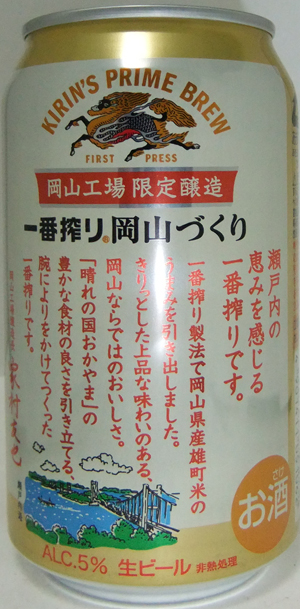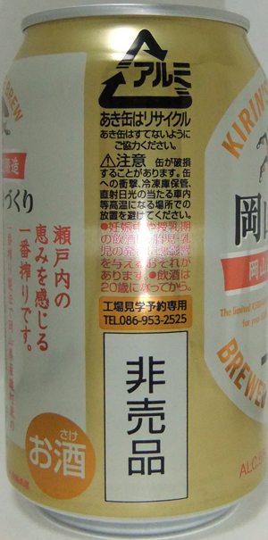 | 製造日 2015.5 | 岡山工場限定醸造 瀬戸内の恵みを感じる一番搾りです。 岡山工場醸造長 家村友也裏面 | |
