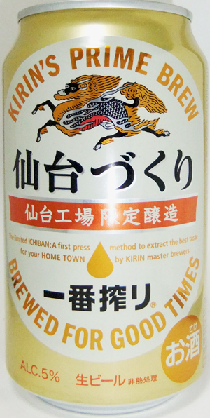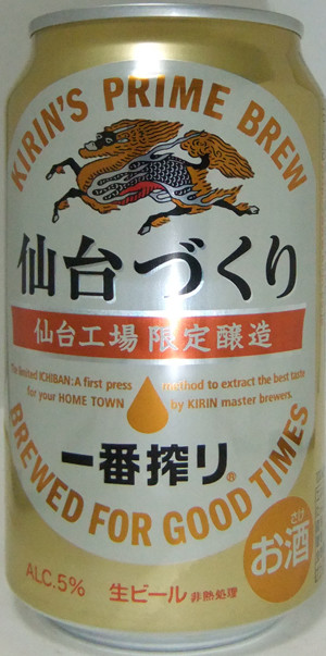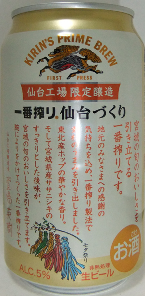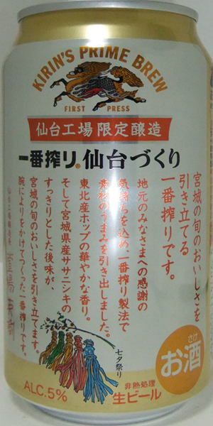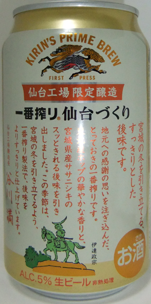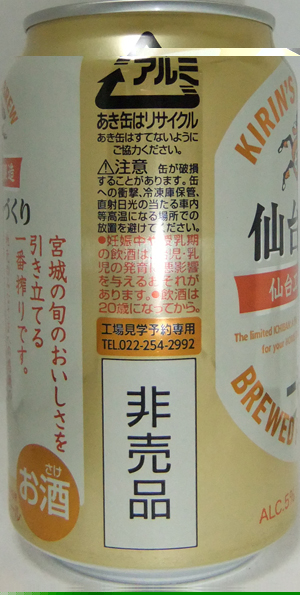| 製造日 2015.5 | 仙台工場限定醸造 宮城の旬のおいしさを引き立てる一番搾りです。 仙台工場醸造長 萱場英樹裏面 | |