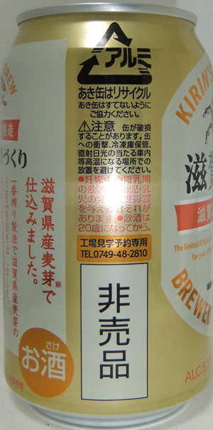 | 製造日 2015.5 | 滋賀工場限定醸造 滋賀県産麦芽で仕込みました。 滋賀工場醸造長 守川斉利裏面 | |