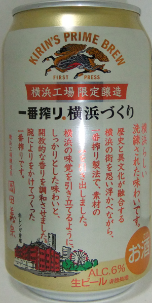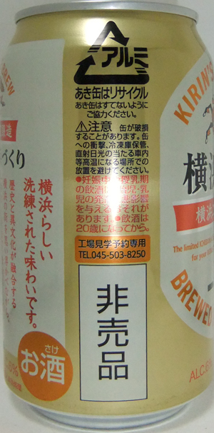 | 製造日 2015.5 | 横浜工場限定醸造 横浜らしい洗練された味わいです。 横浜工場醸造長 岡田義宗裏面 側面非売品 | |