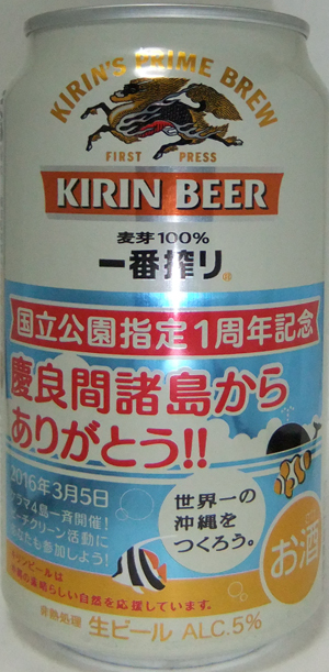 | 製造日 2015.6 | 慶良間諸島からありがとう!!2016年3月15日 ケラマ4島一斉開催!ビーチクリーン活動にあなたも参加しよう!キリンビールは沖縄の素晴らしい自然を応援しています。 裏面 世界一の沖縄をつくろう。 | |