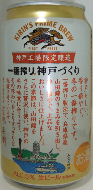 | 製造日 2015.11 | 神戸工場限定醸造 神戸らしい香り華やぐ、冬の一番搾りです。 神戸工場醸造長 萱場英樹裏面 | |