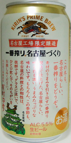| 製造日 2015.11 | 名古屋工場限定醸造 この冬も、名古屋らしい、一番搾りをどうぞ。 名古屋工場醸造長 有村治彦裏面 | |