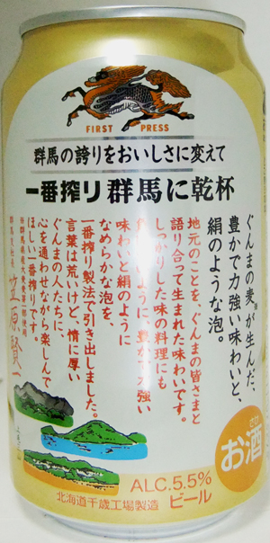 | 製造日 2017.5 | 群馬の誇りをおいしさに変えて 北海道千歳工場製造 ぐんまの麦が生んだ、豊かで力強い味わいと、絹のような泡。 群馬支社長 笠原賢一 裏面 | |