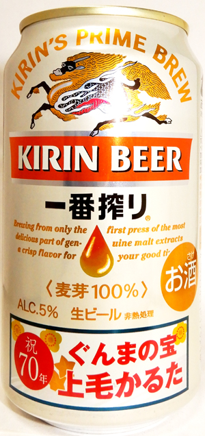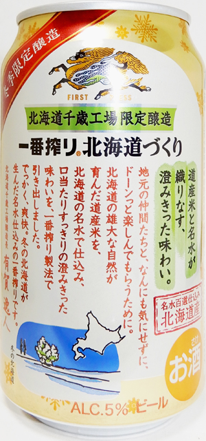 | 製造日 2017.11 | 北海道千歳工場製造の一番搾りは北海道の名水でつくっています。 名水百選を源流にもつ内別川の水を使用しております。 裏面 | |