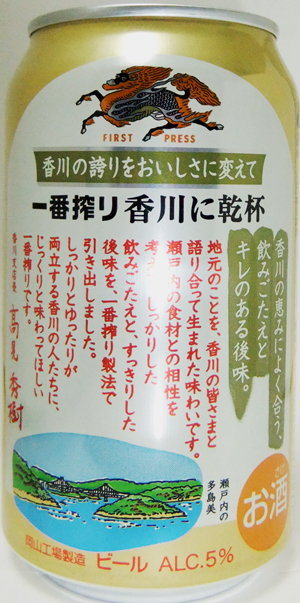 | 製造日 2017.7 | 香川の誇りをおいしさに変えて 岡山工場製造 香川の恵みによく合う、飲みごたえとキレのある後味。 香川支社長 高見秀樹 裏面 | |