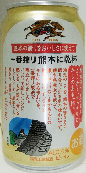 | 製造日 2017.5 | 熊本の誇りをおいしさに変えて 福岡工場製造 熊本のうまかもんによく合う、すっきりとキレのある一杯。 熊本支社長 麻生芳彦 裏面 | |