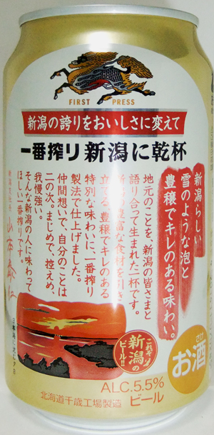 | 製造日 2017.3 | 新潟の誇りをおいしさに変えて 北海道千歳工場製造 新潟らしい雪のような泡と豊穣でキレのある味わい。 新潟支社長 山本泰仁 裏面 | |