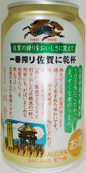 | 製造日 2017.3 | 佐賀の誇りをおいしさに変えて 福岡工場製造 佐賀県産大麦麦芽100%にこだわった、まっすぐな麦のうまみ。 佐賀支社長 小林晋 裏面 | |