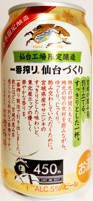 | 製造日 2017.4 | 仙台工場限定醸造 宮城の恵みを引き立てる、すっきりとした一杯。 仙台工場醸造長 谷川満 裏面 | |