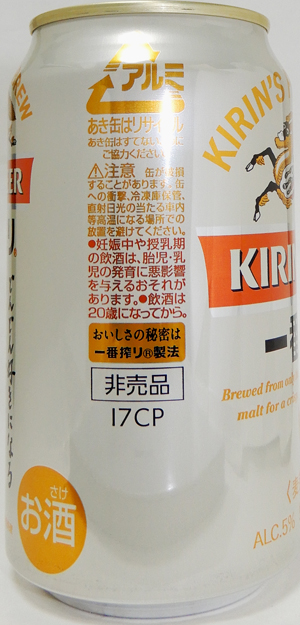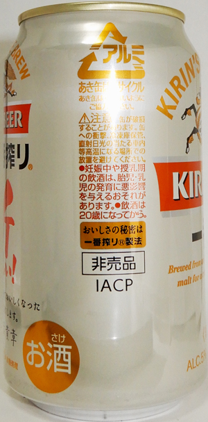 | 製造日 2019.5 | 御愛飲への感謝を込めておいしくなった一番搾りをお届けします。 横面 裏面 新おいしい!新・一番搾り 絶対!もらえるキャンペーン 非売品 締切:2019年6月28日 | |