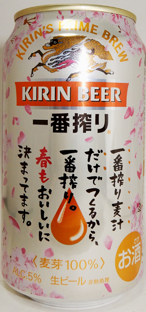 | 製造日 2019.2 | 裏面 一番搾り麦汁だけでつくるから、一番搾り。春もおいしいに決まってます。 | |