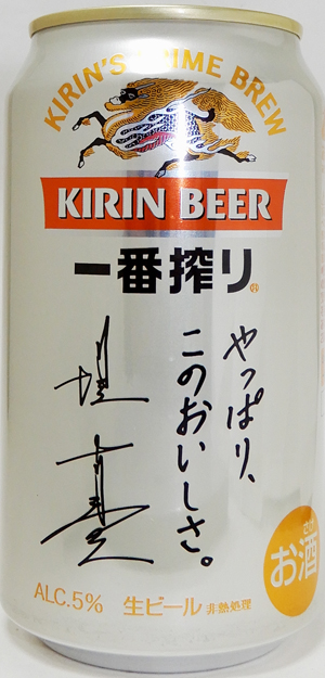| 製造日 2019.9 | やっぱり、このおいしさ。堤真一 新・一番搾り 堤真一さん直筆サイン缶 絶対!もらえるキャンペーン 横面 非売品 締切:2019年10月8日 | |