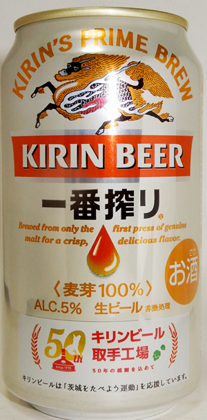 | 製造日 2020.6 | 「茨城を食べよう運動」は、県民一丸となって茨城県の豊かな農林水産物を食べて応援する地産地消運動です。 裏面 キリンビール取手工場 50年の感謝を込めて | |