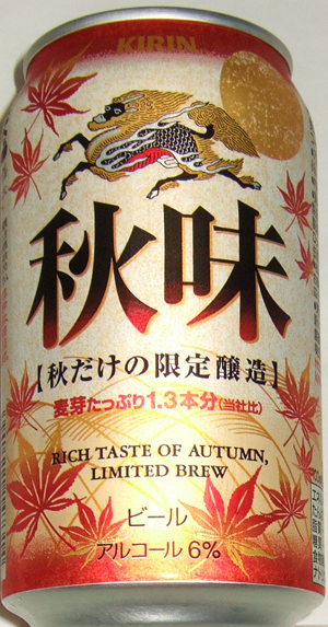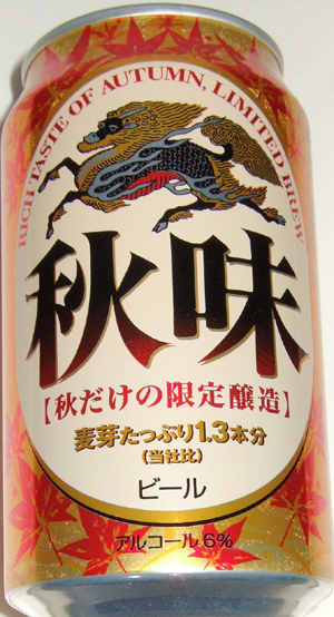 | [秋だけの限定醸造] 麦芽たっぷり1.3本分(当社比) アルコール6% RICH TASTE OF AUTUMN, LIMITED BREW 2007/2008年と同じデザインに見えます。こりゃ、手抜きですな。