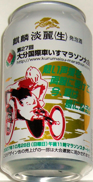 | 製造日 2007.9 | 2007年10月28日(日曜日) 午前11時マラソンスタート!! 熱い声援を両腕に受けて、今、君は風になる! このデザイン缶の売上げの一部は大会運営に活かされます。 http://www.kurumaisu-marathon.com | |