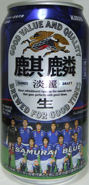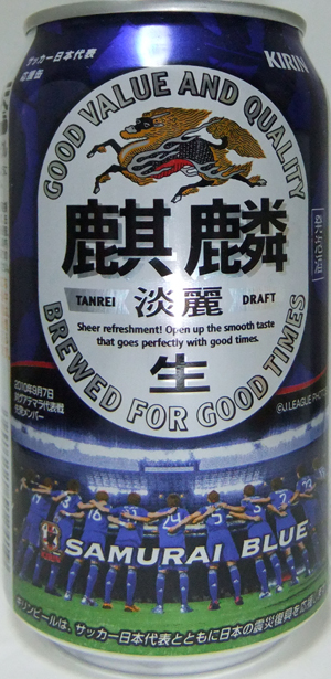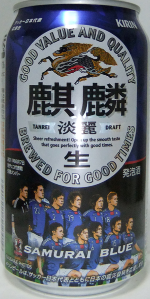 | 製造日 2011.8 | SAMURAI BLUE キリンビールは、サッカー日本代表とともに日本の震災復興を応援します。 裏面 2011年6月7日 対チェコ代表選 先発メンバー 2010年9月7日 対グアテマラ代表選 先発メンバー | |