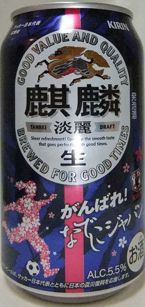| 製造日 2012.7 | がんばれ!なでしこジャパン キリンビールは、サッカー日本代表とともに日本の震災復興を応援します。 | |
