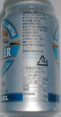 | 製造日 2012.3 | お酒マークが入りました。 SINCE 1888 The legendary KIRIN is a symbol of "Good Luck." Open up KIRIN today, and you'll see what it is all about. | |