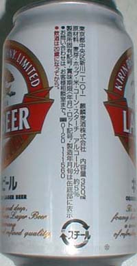 | 製造日 2004.2 | THE MATURE,MELLOW TASTE & DEEP, FOAMY HEAD MAKE KIRIN LAGER BEER A WONDERFUL HARMONY OF REFRESHING TASTE & REFINED QUALITY. | |