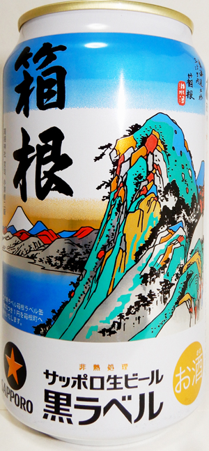 | 箱根神社 宮司 小澤修二筆 歌川広重「東海道五拾三次之内 箱根」 この黒ラベル箱根ラベル缶1本につき1円を箱根町へ寄付いたします。