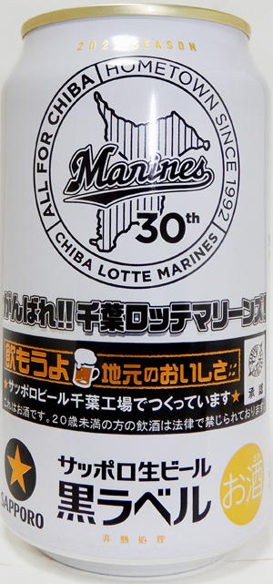 | 製造日 2022.5 | がんばれ!!千葉ロッテマリーンズ! 2022 SEASON ALL FOR CHIBA HOMETOWN SINCE 1992 Marines 30th 飲もうよ 地元のおいしさ サッポロビール千葉工場でつくっています。 | |