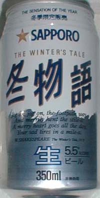 | 製造日 2001.10 | THE WINTER'S TALE 2001 2002 冬にふさわしい深い味わいときめ細やかな泡の 飲み心地をグラスに注いでお楽しみ下さい。 | |