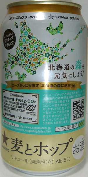 | 製造日 2018.6 | コープさっぽろ SAPPORO共同企画 コープさっぽろの麦とホップ ザを飲んで 北海道の森に海に乾杯! | |